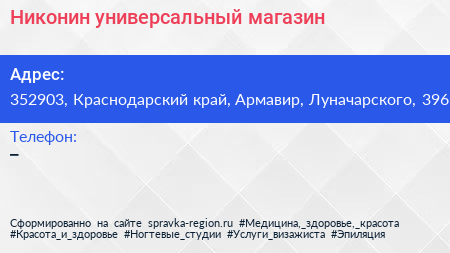 Никонин, универсальный магазин по адресу 352903, Краснодарский край, Армавир, Луначарского, 396 в дальнейшем Организация, размещена в следующих категориях: