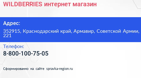 WILDBERRIES, интернет-магазин по адресу 352915, Краснодарский край, Армавир, Советской Армии, 221 в дальнейшем Организация, размещена в следующих категориях: