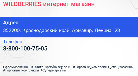 WILDBERRIES, интернет-магазин по адресу 352900, Краснодарский край, Армавир, Ленина, 93 в дальнейшем Организация, размещена в следующих категориях: