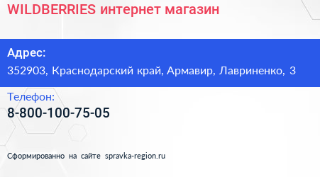 WILDBERRIES, интернет-магазин по адресу 352903, Краснодарский край, Армавир, Лавриненко, 3 в дальнейшем Организация, размещена в следующих категориях: