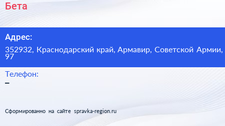 Бета по адресу 352932, Краснодарский край, Армавир, Советской Армии, 97 в дальнейшем Организация, размещена в следующих категориях:
