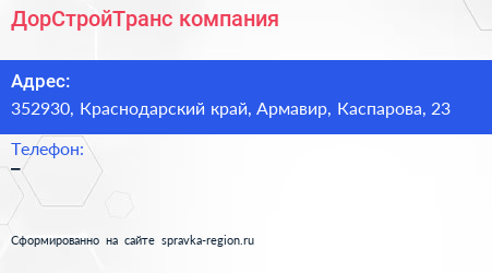 ДорСтройТранс, компания по адресу 352930, Краснодарский край, Армавир, Каспарова, 23 в дальнейшем Организация, размещена в следующих категориях:
