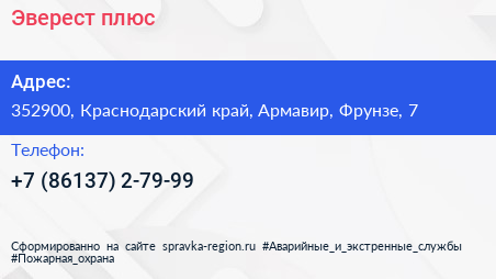 Эверест плюс по адресу 352900, Краснодарский край, Армавир, Фрунзе, 7 в дальнейшем Организация, размещена в следующих категориях: