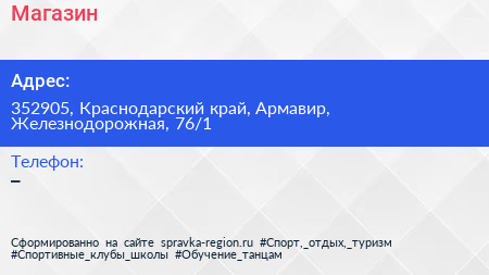 Магазин по адресу 352905, Краснодарский край, Армавир, Железнодорожная, 76/1 в дальнейшем Организация, размещена в следующих категориях:
