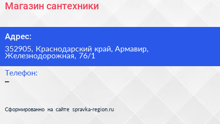 Магазин сантехники по адресу 352905, Краснодарский край, Армавир, Железнодорожная, 76/1 в дальнейшем Организация, размещена в следующих категориях: