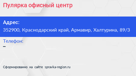 Пулярка, офисный центр по адресу 352900, Краснодарский край, Армавир, Халтурина, 89/3 в дальнейшем Организация, размещена в следующих категориях: