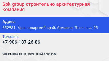 Spk-group, строительно-архитектурная компания по адресу 352931, Краснодарский край, Армавир, Энгельса, 25 в дальнейшем Организация, размещена в следующих категориях: