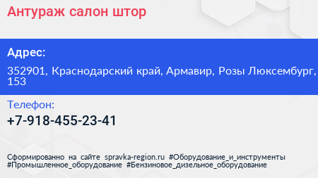 Антураж, салон штор по адресу 352901, Краснодарский край, Армавир, Розы Люксембург, 153 в дальнейшем Организация, размещена в следующих категориях: