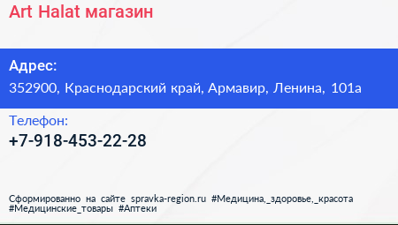 Art-Halat, магазин по адресу 352900, Краснодарский край, Армавир, Ленина, 101а в дальнейшем Организация, размещена в следующих категориях: