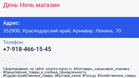День-Ночь, магазин по адресу 352900, Краснодарский край, Армавир, Ленина, 70 в дальнейшем Организация, размещена в следующих категориях: