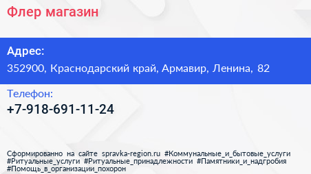 Флер, магазин по адресу 352900, Краснодарский край, Армавир, Ленина, 82 в дальнейшем Организация, размещена в следующих категориях: