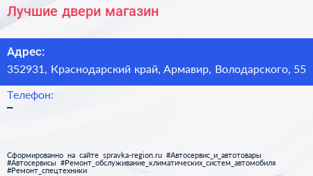 Лучшие двери, магазин по адресу 352931, Краснодарский край, Армавир, Володарского, 55 в дальнейшем Организация, размещена в следующих категориях:
