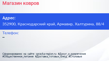 Магазин ковров по адресу 352900, Краснодарский край, Армавир, Халтурина, 88/4 в дальнейшем Организация, размещена в следующих категориях: