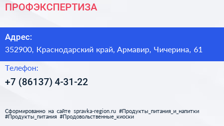 ПРОФЭКСПЕРТИЗА по адресу 352900, Краснодарский край, Армавир, Чичерина, 61 в дальнейшем Организация, размещена в следующих категориях: