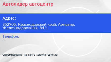 Автолидер, автоцентр по адресу 352905, Краснодарский край, Армавир, Железнодорожная, 84/1 в дальнейшем Организация, размещена в следующих категориях: