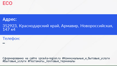ECO по адресу 352923, Краснодарский край, Армавир, Новороссийская, 147 к4 в дальнейшем Организация, размещена в следующих категориях: