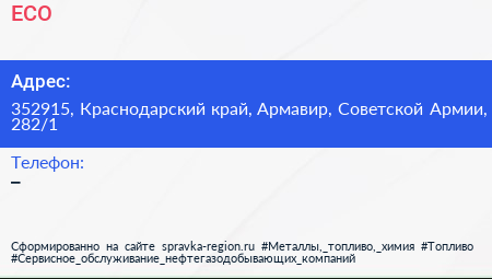 ECO по адресу 352915, Краснодарский край, Армавир, Советской Армии, 282/1 в дальнейшем Организация, размещена в следующих категориях: