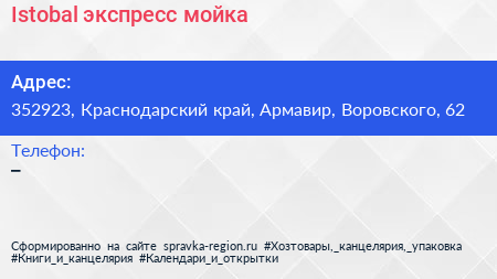 Istobal, экспресс-мойка по адресу 352923, Краснодарский край, Армавир, Воровского, 62 в дальнейшем Организация, размещена в следующих категориях:
