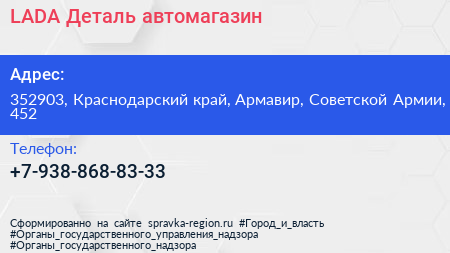LADA Деталь, автомагазин по адресу 352903, Краснодарский край, Армавир, Советской Армии, 452 в дальнейшем Организация, размещена в следующих категориях: