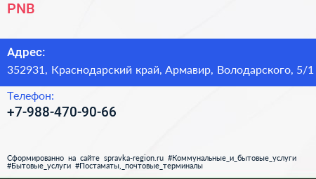PNB по адресу 352931, Краснодарский край, Армавир, Володарского, 5/1 в дальнейшем Организация, размещена в следующих категориях: