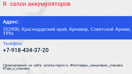 R+, салон аккумуляторов по адресу 352900, Краснодарский край, Армавир, Советской Армии, 199а в дальнейшем Организация, размещена в следующих категориях: