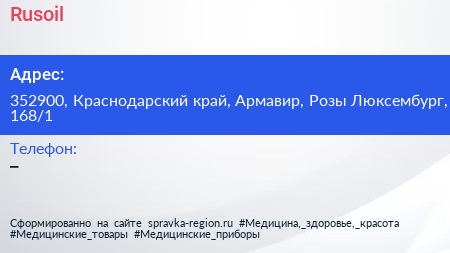 Rusoil по адресу 352900, Краснодарский край, Армавир, Розы Люксембург, 168/1 в дальнейшем Организация, размещена в следующих категориях: