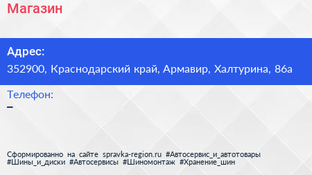 Магазин по адресу 352900, Краснодарский край, Армавир, Халтурина, 86а в дальнейшем Организация, размещена в следующих категориях: