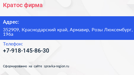 Кратос, фирма по адресу 352909, Краснодарский край, Армавир, Розы Люксембург, 196а в дальнейшем Организация, размещена в следующих категориях: