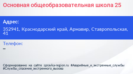 Основная общеобразовательная школа №25 по адресу 352941, Краснодарский край, Армавир, Ставропольская, 41 в дальнейшем Организация, размещена в следующих категориях: