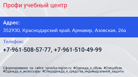 Профи, учебный центр по адресу 352930, Краснодарский край, Армавир, Азовская, 26а в дальнейшем Организация, размещена в следующих категориях: