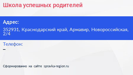 Школа успешных родителей по адресу 352931, Краснодарский край, Армавир, Новороссийская, 2/4 в дальнейшем Организация, размещена в следующих категориях: