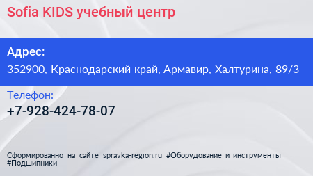 Sofia KIDS, учебный центр по адресу 352900, Краснодарский край, Армавир, Халтурина, 89/3 в дальнейшем Организация, размещена в следующих категориях: