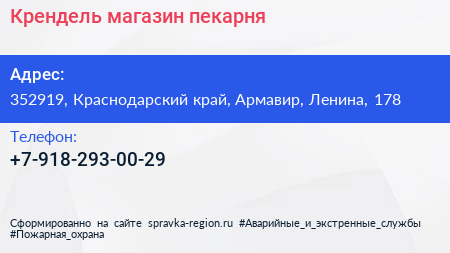 Крендель, магазин-пекарня по адресу 352919, Краснодарский край, Армавир, Ленина, 178 в дальнейшем Организация, размещена в следующих категориях: