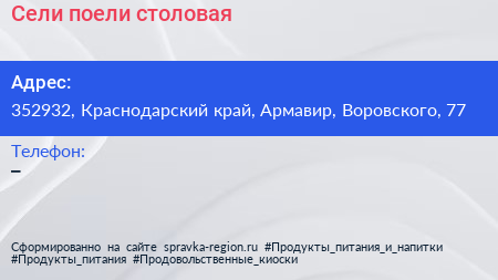 Сели-поели, столовая по адресу 352932, Краснодарский край, Армавир, Воровского, 77 в дальнейшем Организация, размещена в следующих категориях: