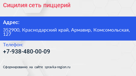 Сицилия, сеть пиццерий по адресу 352900, Краснодарский край, Армавир, Комсомольская, 127 в дальнейшем Организация, размещена в следующих категориях: