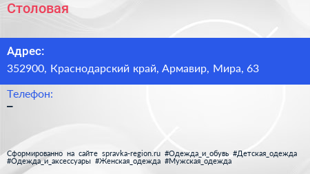 Столовая по адресу 352900, Краснодарский край, Армавир, Мира, 63 в дальнейшем Организация, размещена в следующих категориях: