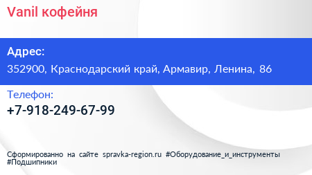 Vanil, кофейня по адресу 352900, Краснодарский край, Армавир, Ленина, 86 в дальнейшем Организация, размещена в следующих категориях: