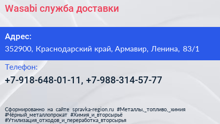 Wasabi, служба доставки по адресу 352900, Краснодарский край, Армавир, Ленина, 83/1 в дальнейшем Организация, размещена в следующих категориях: