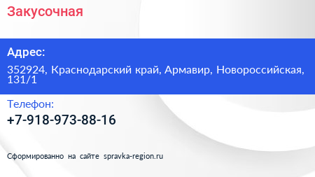 Закусочная по адресу 352924, Краснодарский край, Армавир, Новороссийская, 131/1 в дальнейшем Организация, размещена в следующих категориях: