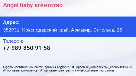 Angel baby, агентство по адресу 352931, Краснодарский край, Армавир, Энгельса, 25 в дальнейшем Организация, размещена в следующих категориях: