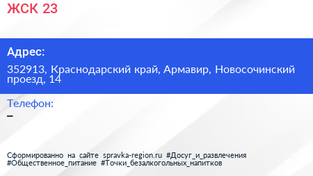 ЖСК №23 по адресу 352913, Краснодарский край, Армавир, Новосочинский проезд, 14 в дальнейшем Организация, размещена в следующих категориях: