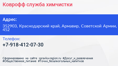 Коврофф, служба химчистки по адресу 352903, Краснодарский край, Армавир, Советской Армии, 452 в дальнейшем Организация, размещена в следующих категориях: