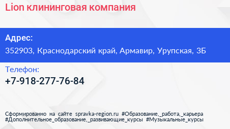 Lion, клининговая компания по адресу 352903, Краснодарский край, Армавир, Урупская, 3Б в дальнейшем Организация, размещена в следующих категориях: