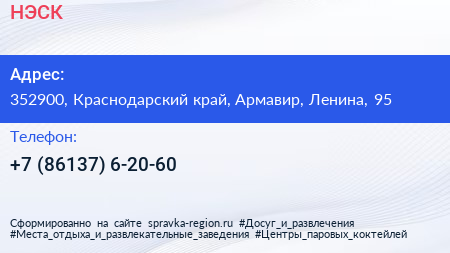 НЭСК по адресу 352900, Краснодарский край, Армавир, Ленина, 95 в дальнейшем Организация, размещена в следующих категориях: