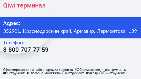 Qiwi, терминал по адресу 352901, Краснодарский край, Армавир, Лермонтова, 139 в дальнейшем Организация, размещена в следующих категориях: