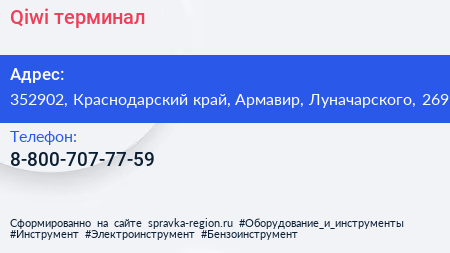 Qiwi, терминал по адресу 352902, Краснодарский край, Армавир, Луначарского, 269 в дальнейшем Организация, размещена в следующих категориях: