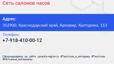 Сеть салонов часов по адресу 352900, Краснодарский край, Армавир, Халтурина, 113 в дальнейшем Организация, размещена в следующих категориях:
