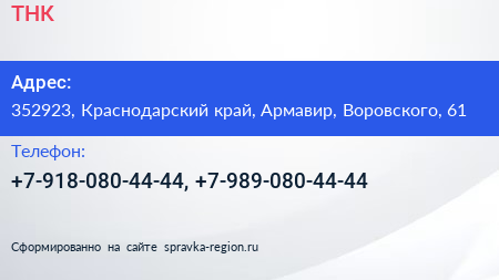 ТНК по адресу 352923, Краснодарский край, Армавир, Воровского, 61 в дальнейшем Организация, размещена в следующих категориях: