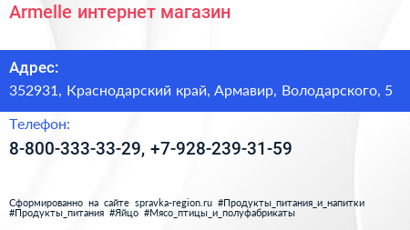 Armelle, интернет-магазин по адресу 352931, Краснодарский край, Армавир, Володарского, 5 в дальнейшем Организация, размещена в следующих категориях: