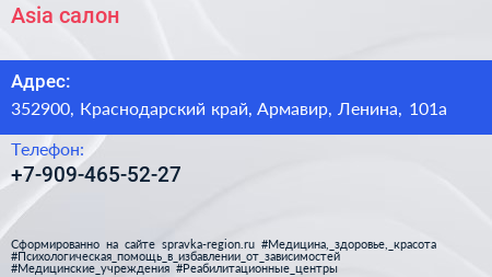 Asia, салон по адресу 352900, Краснодарский край, Армавир, Ленина, 101а в дальнейшем Организация, размещена в следующих категориях: